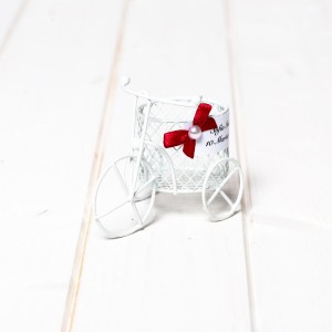 Adaugă un strop de eleganță și rafinament evenimentului tău cu această mărturie bicicletă din sârmă albă, ideală pentru nunți, botezuri și evenimente speciale. Designul delicat și materialele de calitate transformă această mărturie handmade într-un suvenir perfect pentru invitați.
