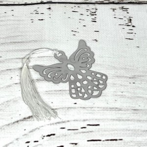 Marturiile semn de carte pentru nunta sunt realizate din metal argintiu si accesorizate cu snur alb.
