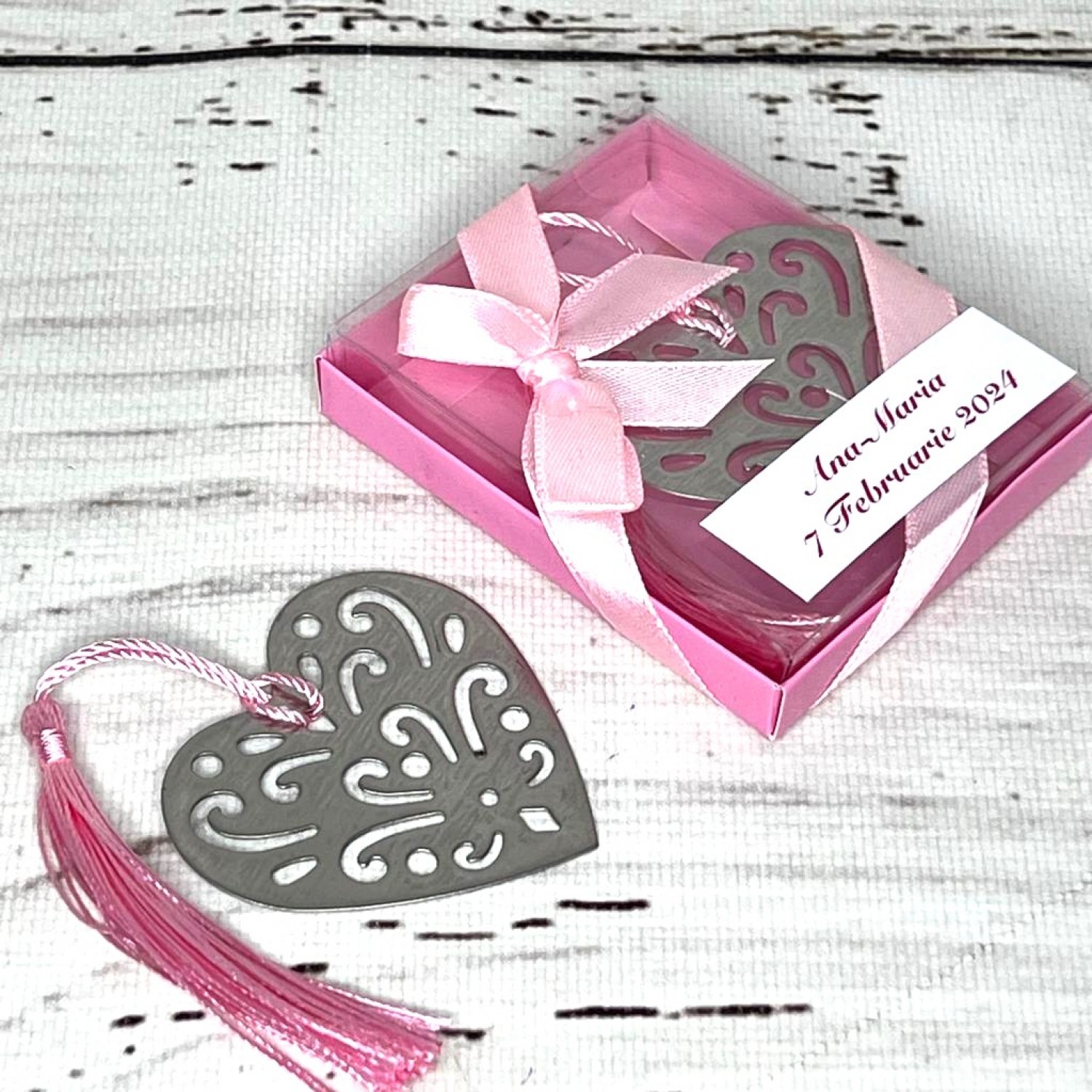 Marturiile semn de carte inima sunt ambalate in cutiute cadou.