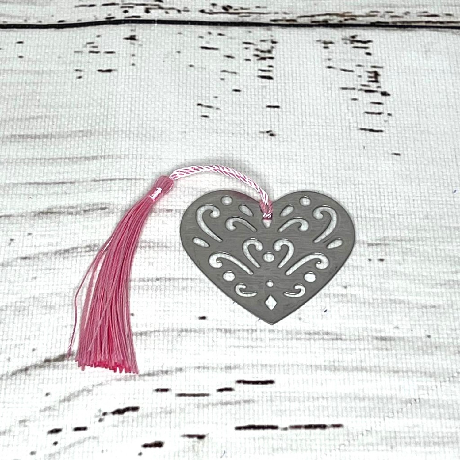 Marturiile de nunta semn de carte inima cu decor roz si model sunt cadoul perfect pentru iubitorii de lectura.