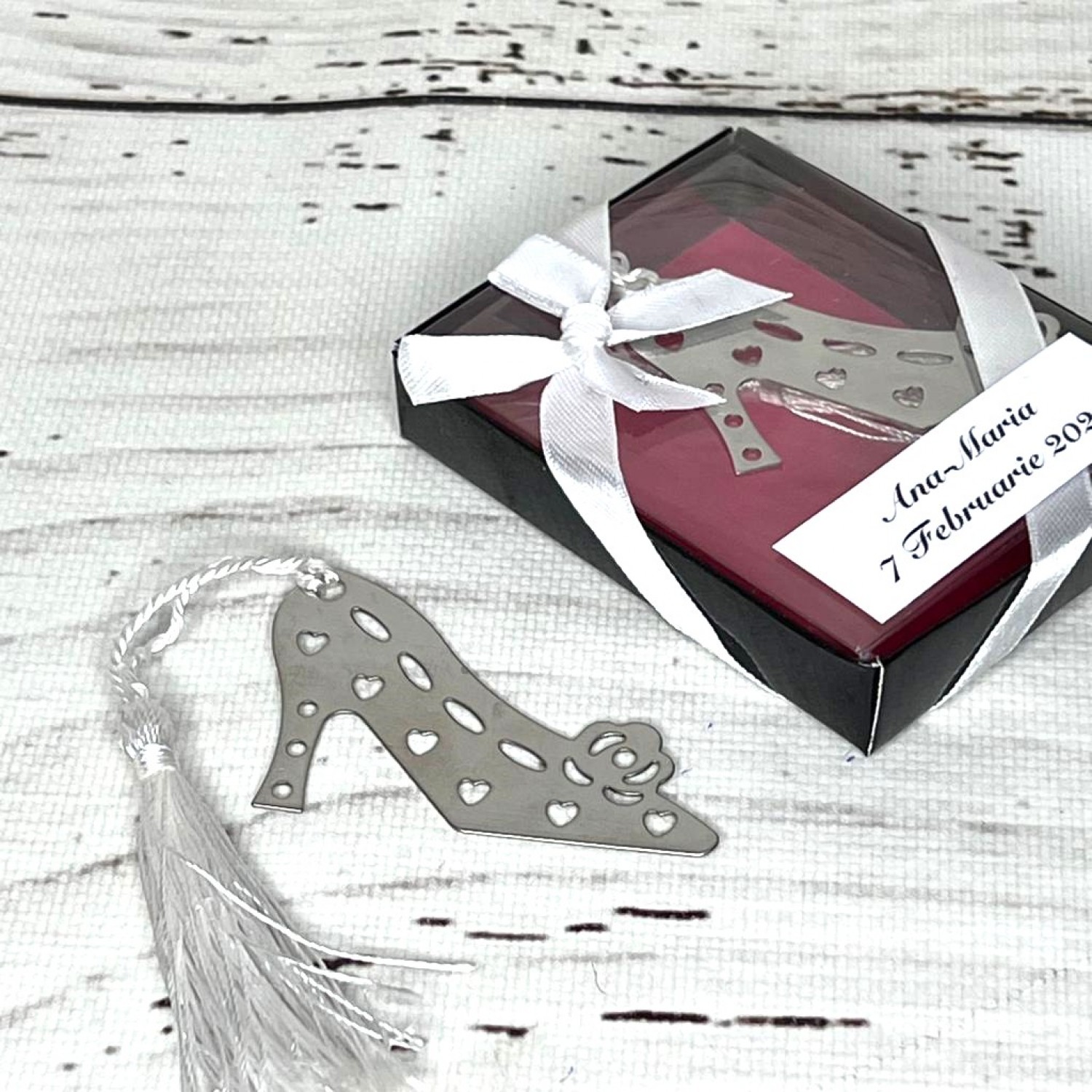 Marturiile nunta semne de carte pantof sunt alegerea perfecta pentru un eveniment cu tema "Cenusareasa". Aceste marturii cu design atractiv sunt realizate din metal si au snur in capat.