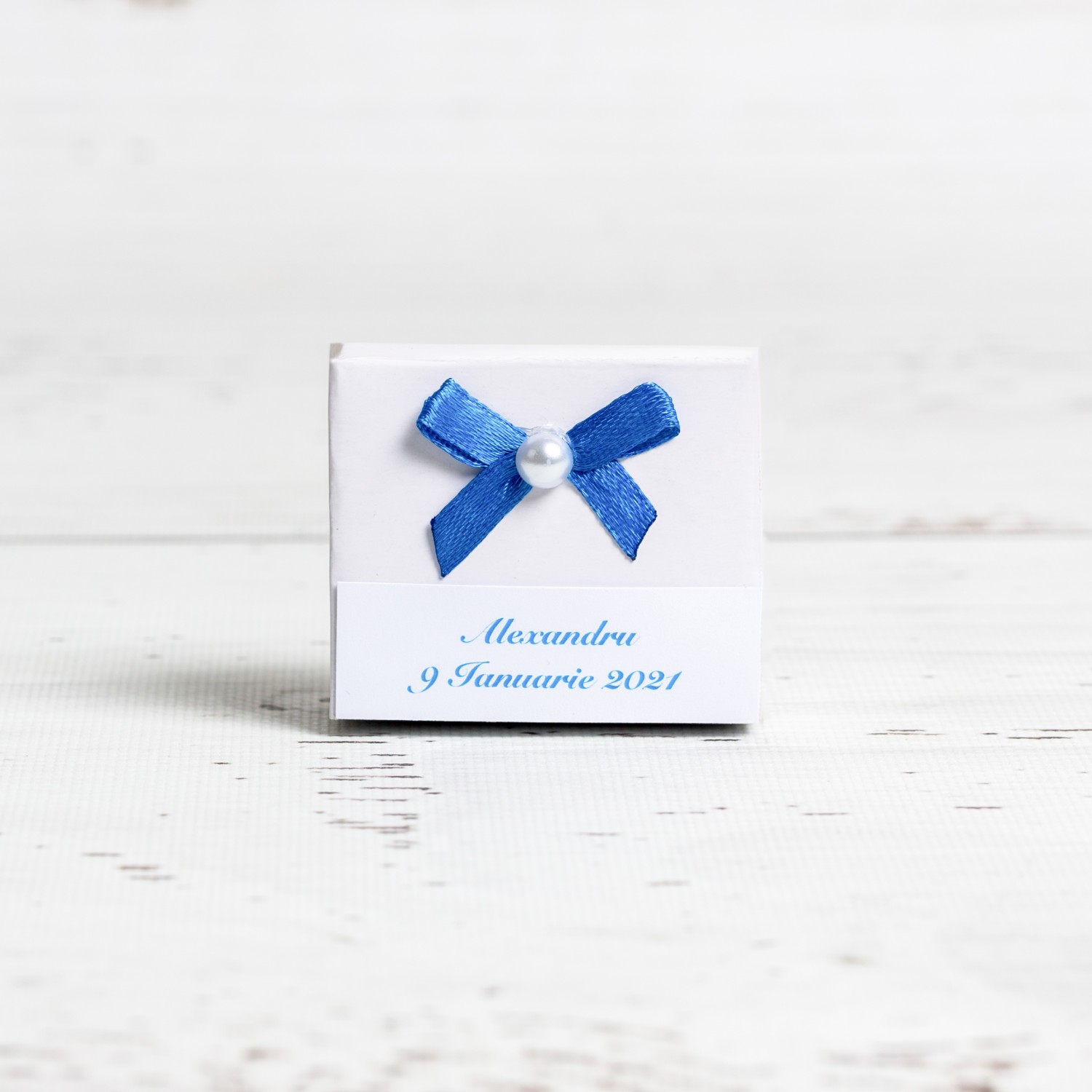 Personalizarea este GRATUITA si consta in lipirea unei etichete si a unei fundite in culoarea dorita de cutiuta.