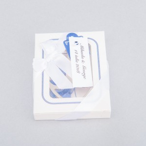 Desfacatorul ancora este o marturie cu tematica marina ce vine ambalat intr-o cutiuta cadou eleganta, cu capac transparent si panglica albastra.