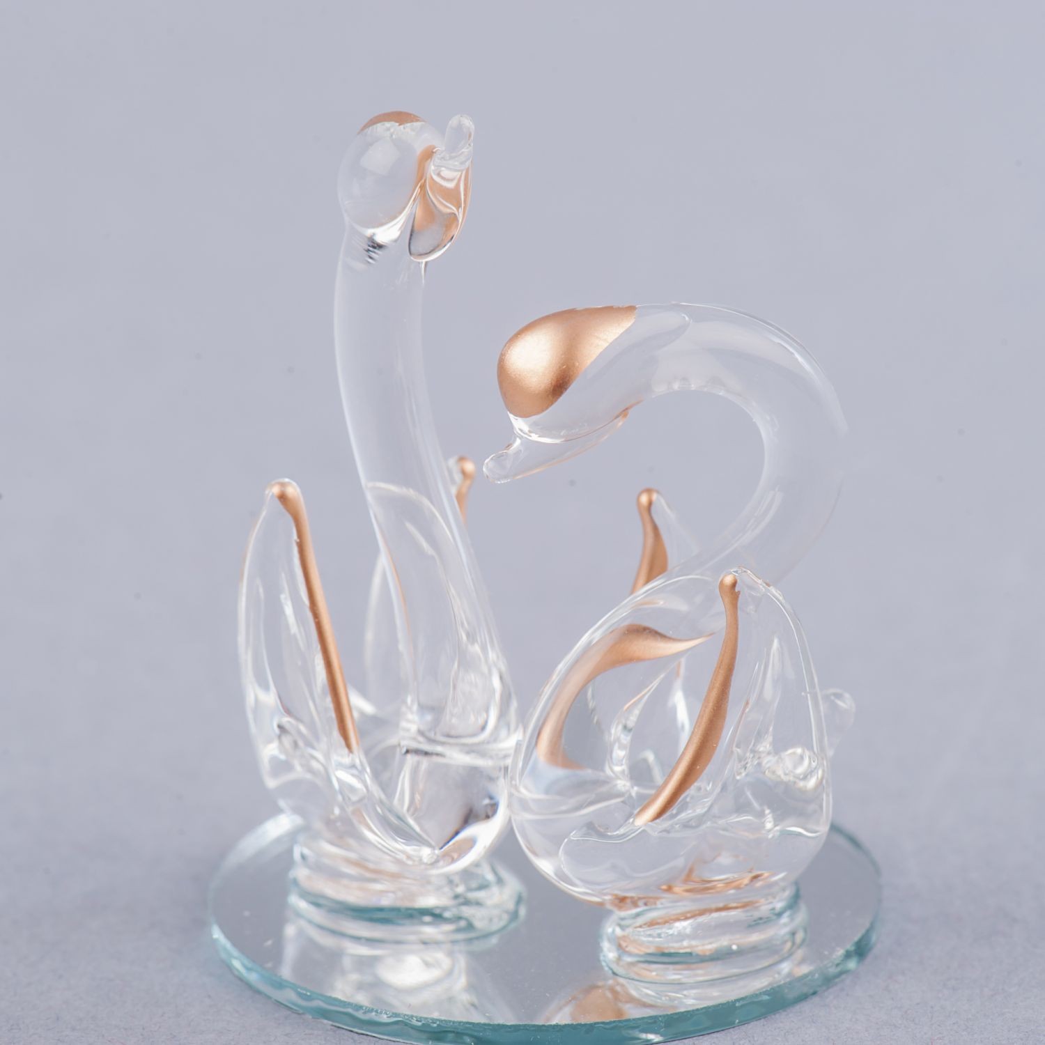 Lebedele stau pe un suport de sticla rotund cu diametrul de 4,5 cm. Marturiile lebada au inaltimea de 5,5 cm.