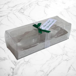 ✔ Ambalaj: Cutie transparentă cu fundiță și etichetă personalizabilă