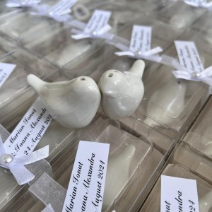 Completează decorul nunții tale cu un set elegant de solnițe în formă de porumbei! Aceste mărturii delicate reprezintă pacea, iubirea și armonia, fiind cadoul ideal pentru invitații tăi.