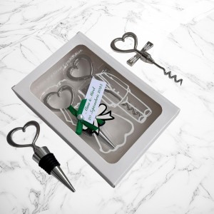 Un cadou elegant și util pentru invitații tăi, acest set format din dop de sticlă și tirbușon cu mânere în formă de inimă este o alegere rafinată pentru o nuntă romantică sau un botez memorabil! 🥂