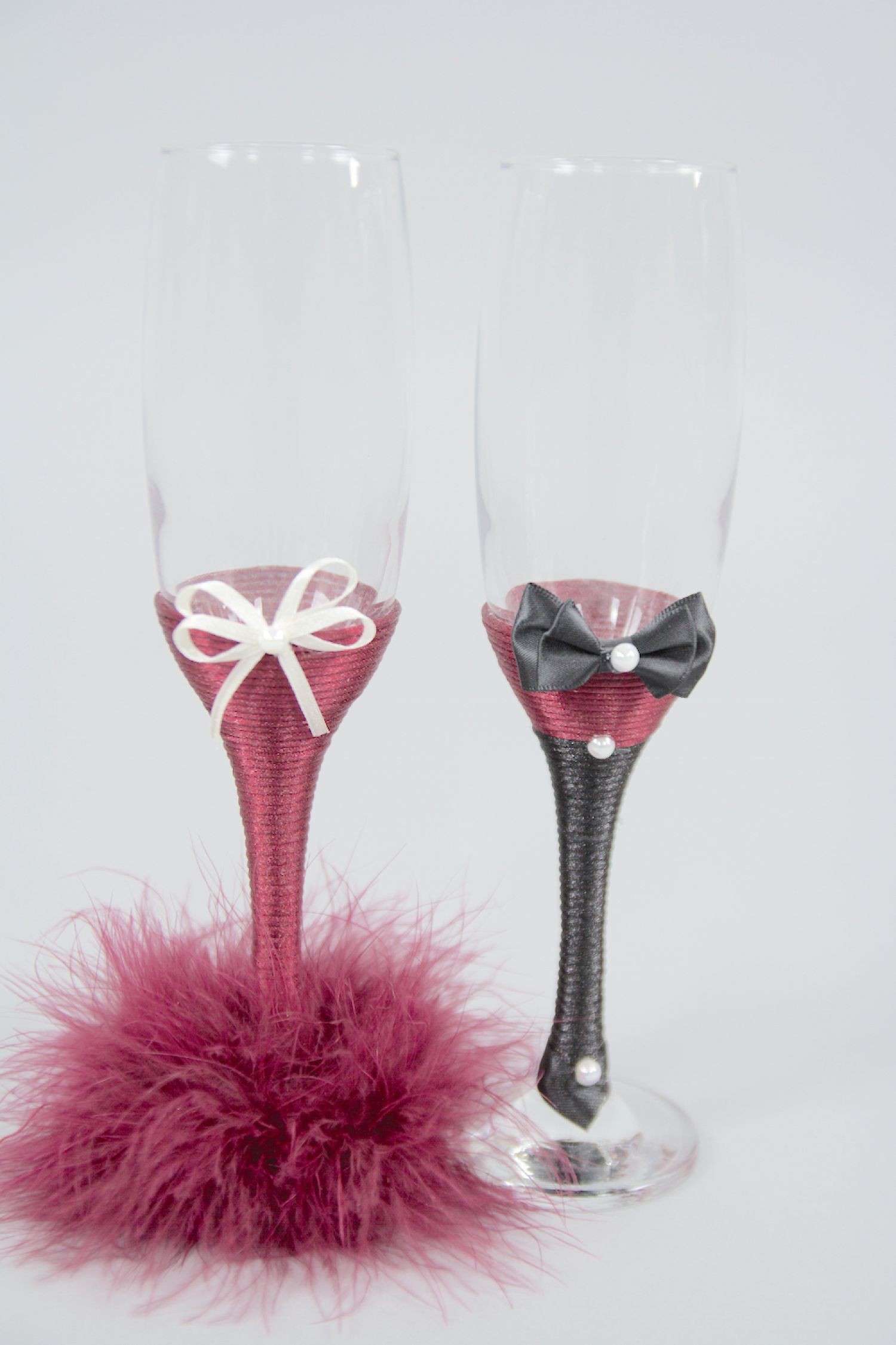 Paharele de nunta decorate manual sunt ideale pentru servirea sampaniei.