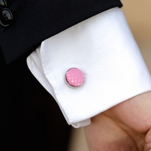 Set de ocazie roz format din trei accesorii decorative irezistibile, ce innobileaza tinuta oricarui barbat elegant: papion, batista si butoni camasa.