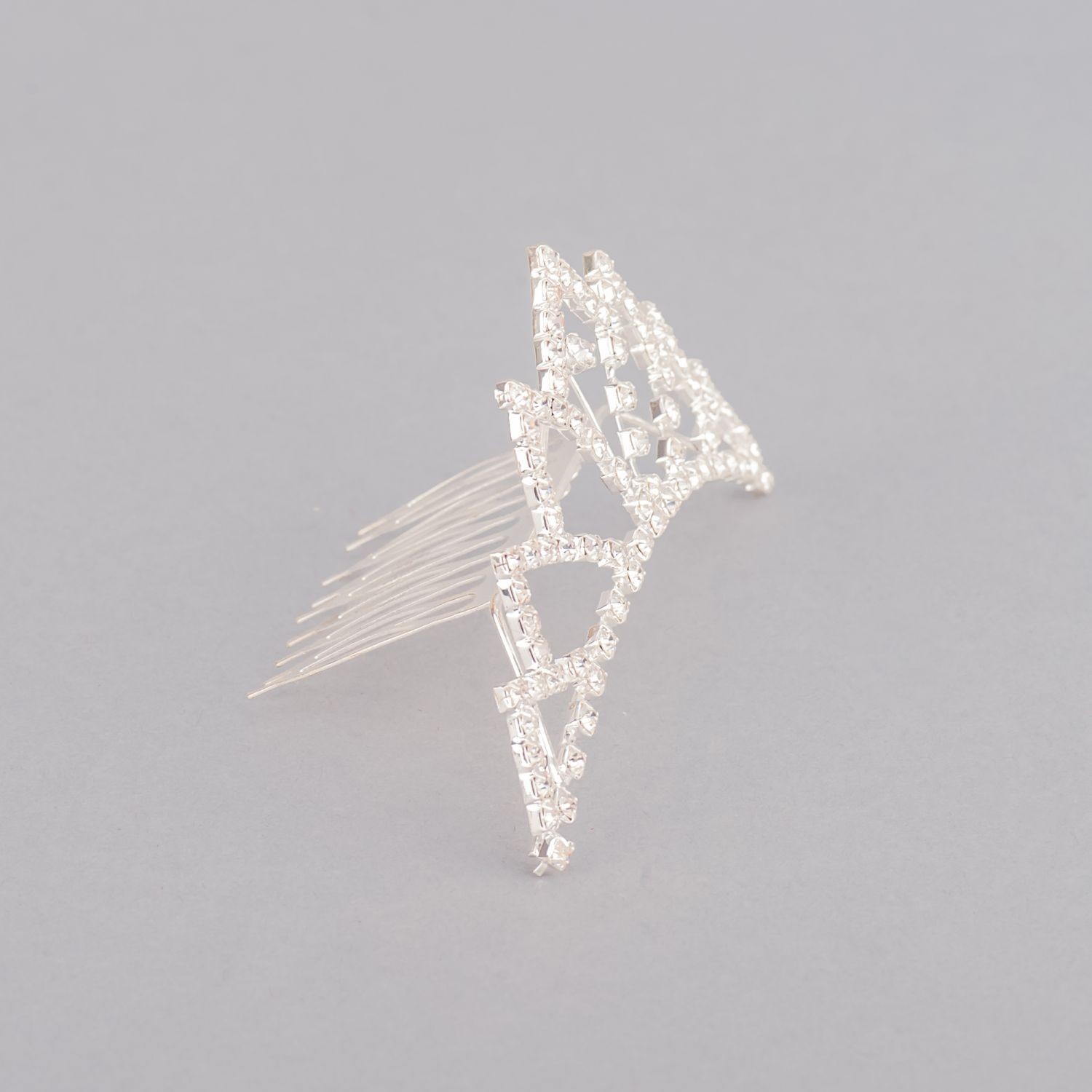 Acest pieptan argintiu pentru mirese se remarca printr-un design elegant si feminin si este realizat din metal inoxidabil de culoare argintie.