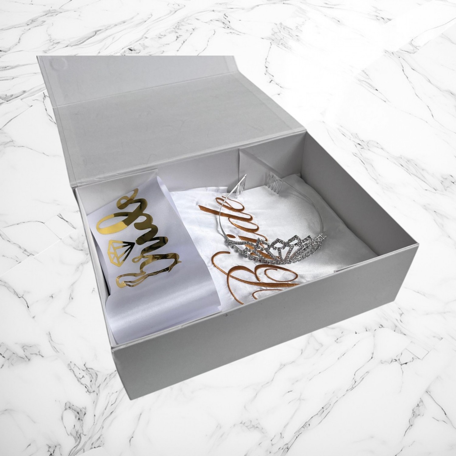 🎁 Totul este ambalat într-o cutie albă sofisticată, inscripționată „Bride to Be” – gata de oferit sau de savurat chiar de tine!