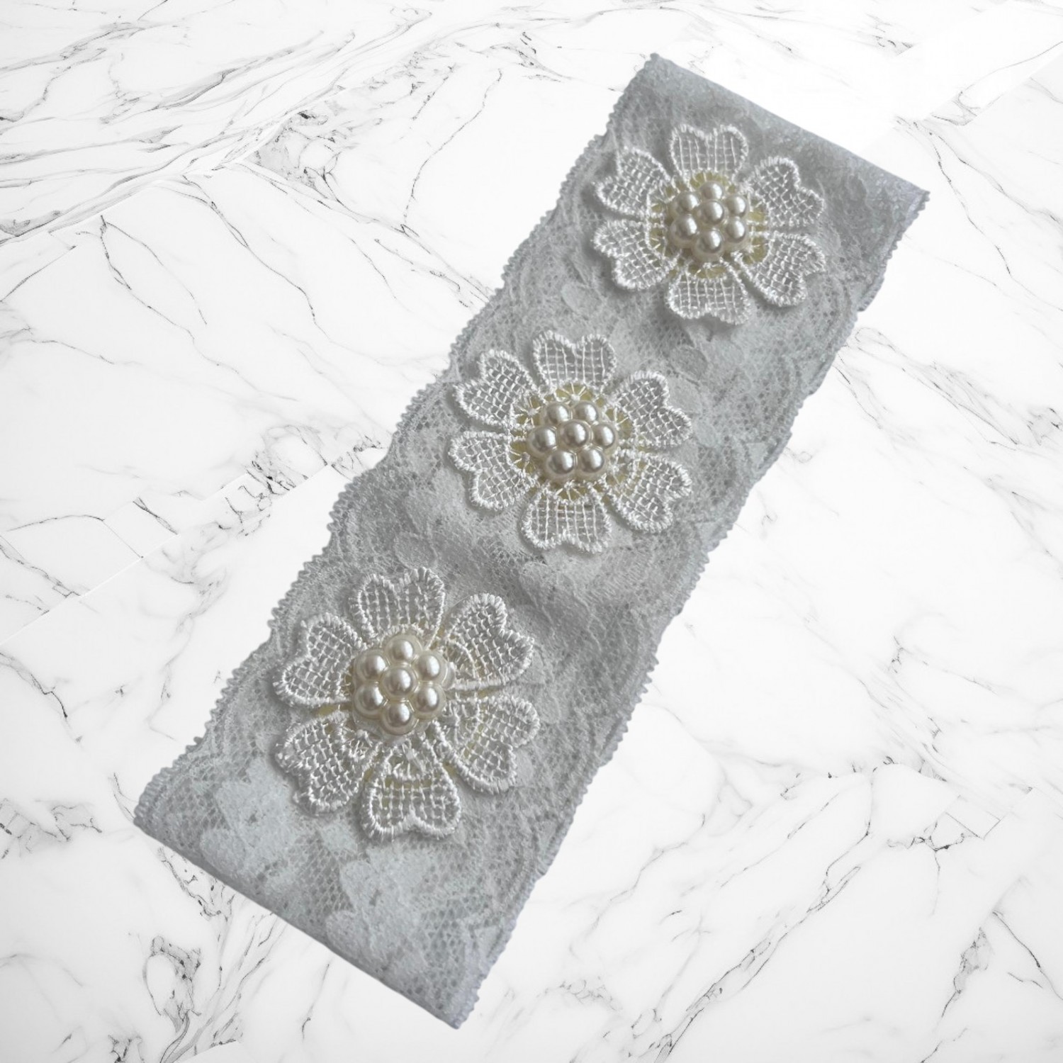 🌸 Un accesoriu decorativ cu dantelă și flori – ideal pentru a adăuga un detaliu delicat