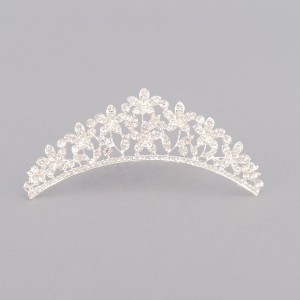 O poti face cu ajutorul unui pieptan cu flori realizat din material metalic inoxidabil de culoare argintie decorat cu cristale si mici strassuri.