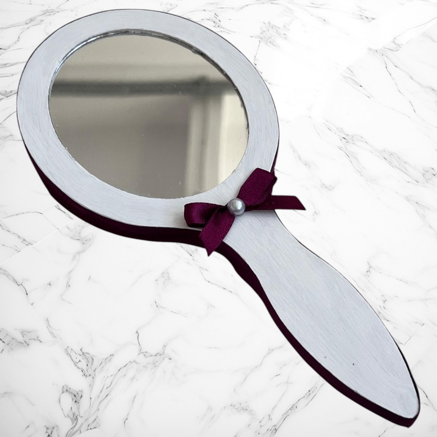 Oglindă de mână asortată, perfectă pentru momentul pregătirii miresei.