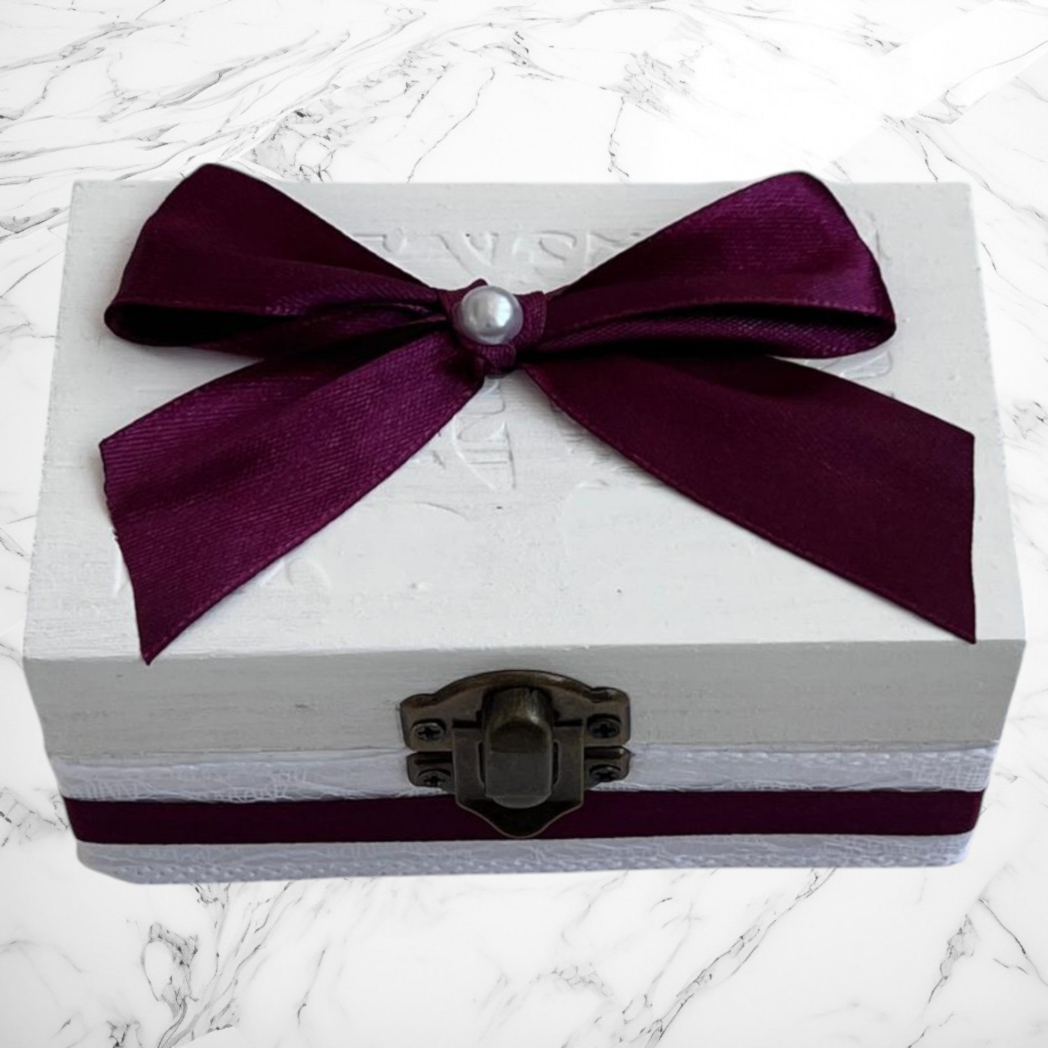 Cutie decorativă pentru bijuterii sau simboluri tradiționale, cu fundă satinată și închidere metalică – un detaliu elegant și util.
