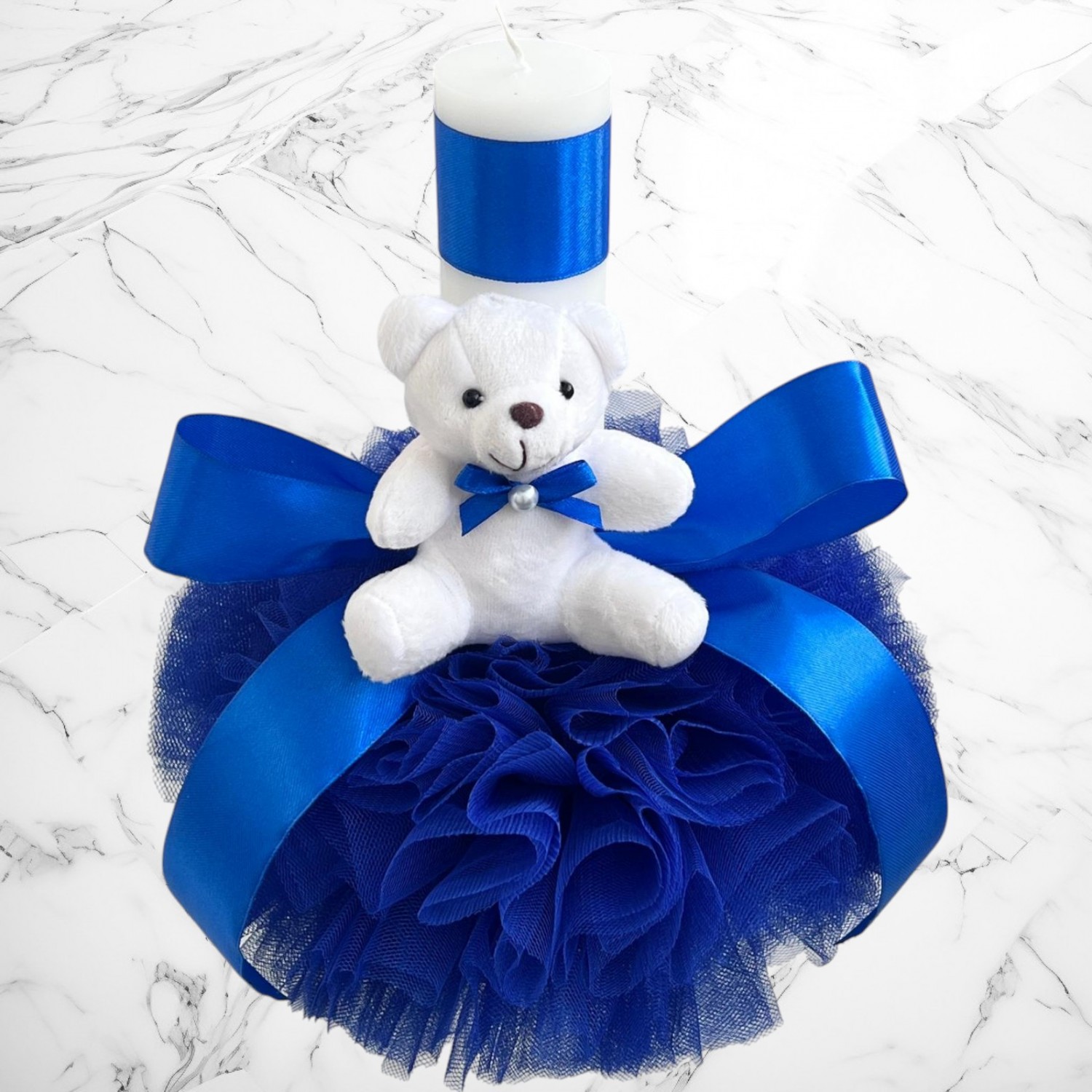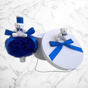 Comanda acum produsul "Set botez albastru cu ursuleț – Cutie pentru hăinuțe și lumânare".