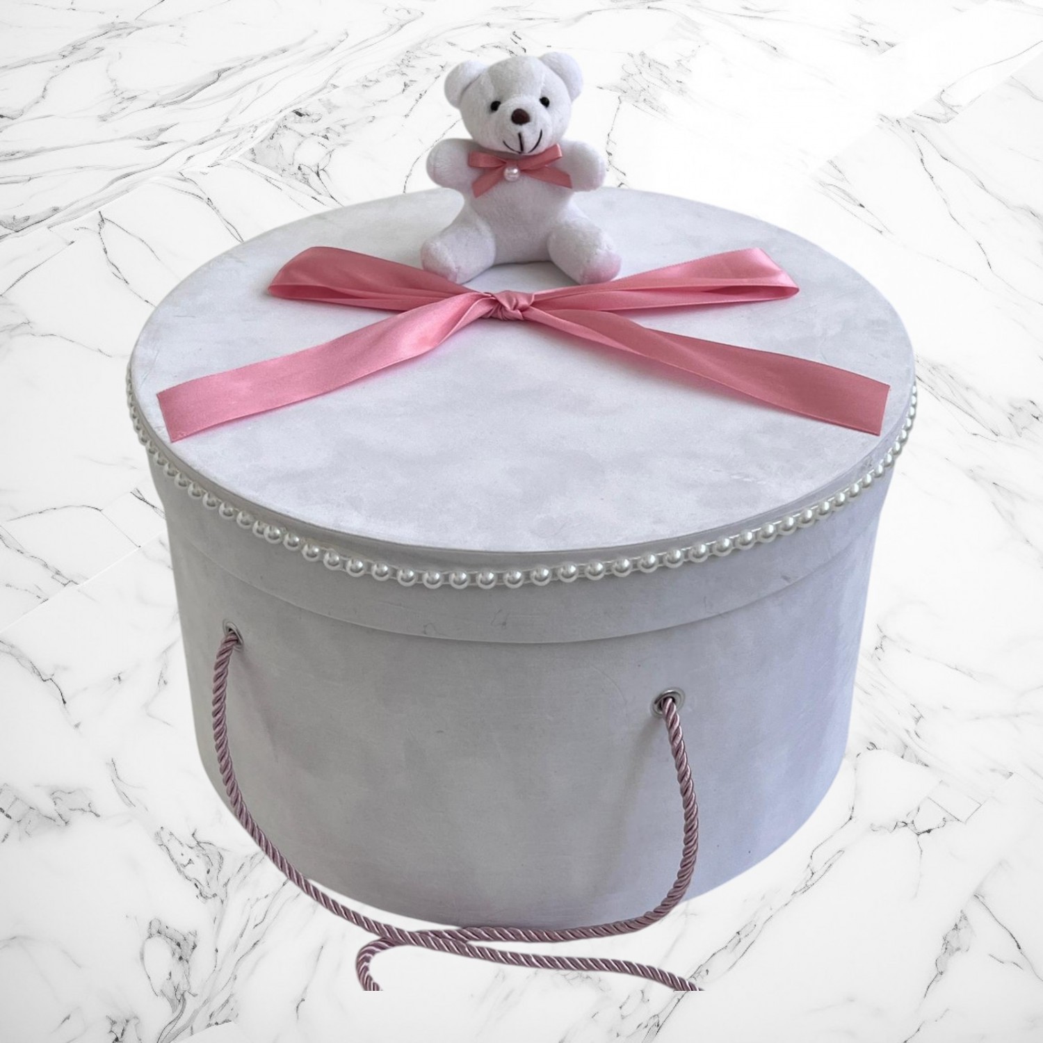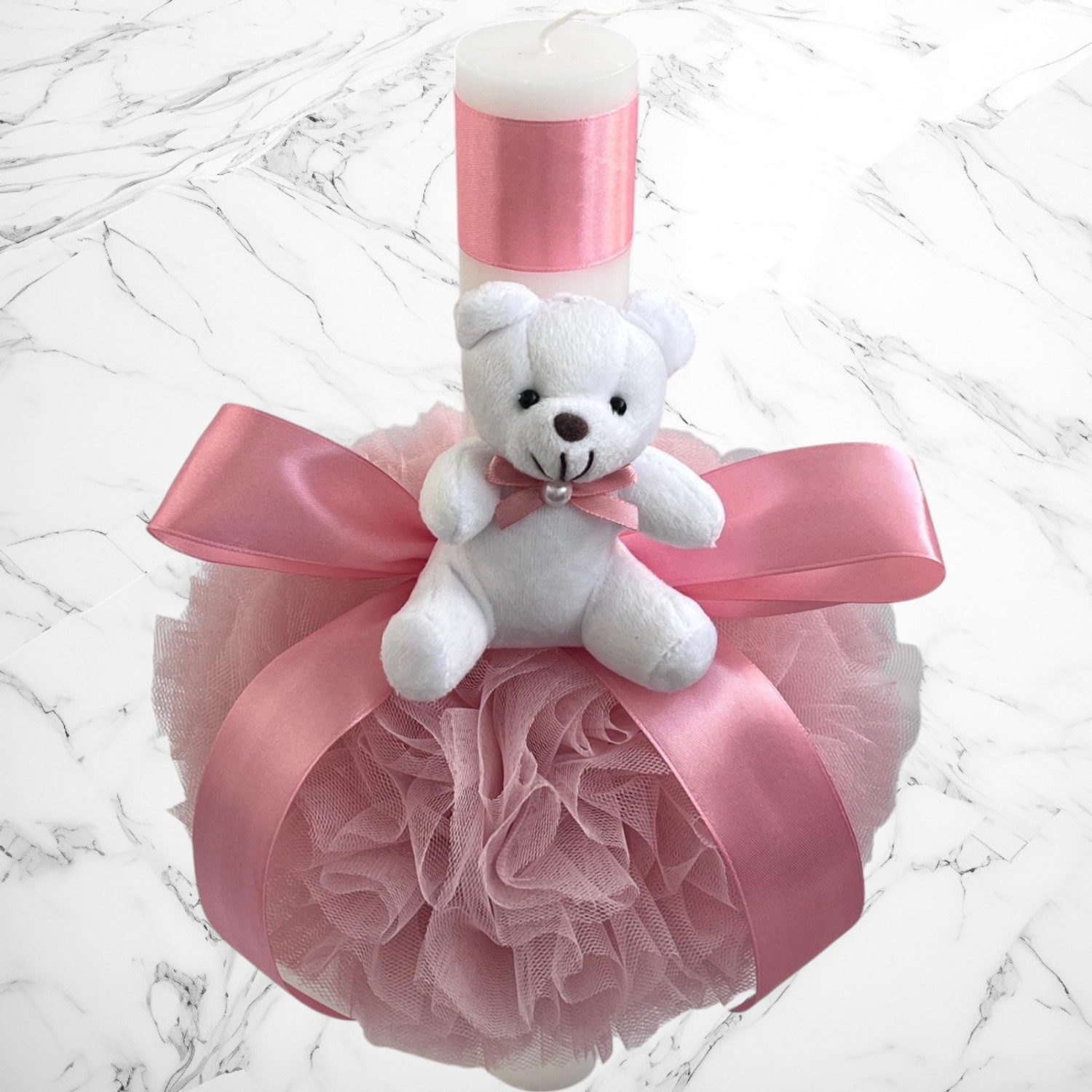 Comanda acum produsul "Set botez roz pudra cu ursuleț – Cutie pentru hăinuțe și lumânare".