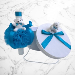Setul pentru botez cu ursuleț este alegerea perfectă pentru un eveniment de neuitat, combinând eleganța și delicatețea cu un design adorabil. Acest set complet include o cutie elegantă pentru hăinuțe pentru cel mic și o lumânare de botez decorată cu un ursuleț simpatic, simbol al purității și gingășiei copilăriei.