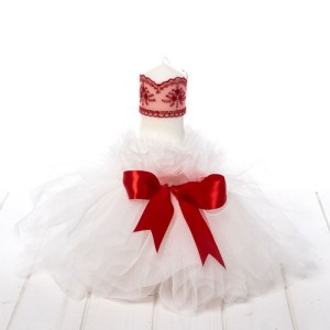 Lumanarea botez imbracata in tulle alb, cu panglica rosie simbolizeaza lumina pe care o primeste fetita din momentul crestinarii. Lumanarea are 30 cm inaltime si 7 cm diametru.