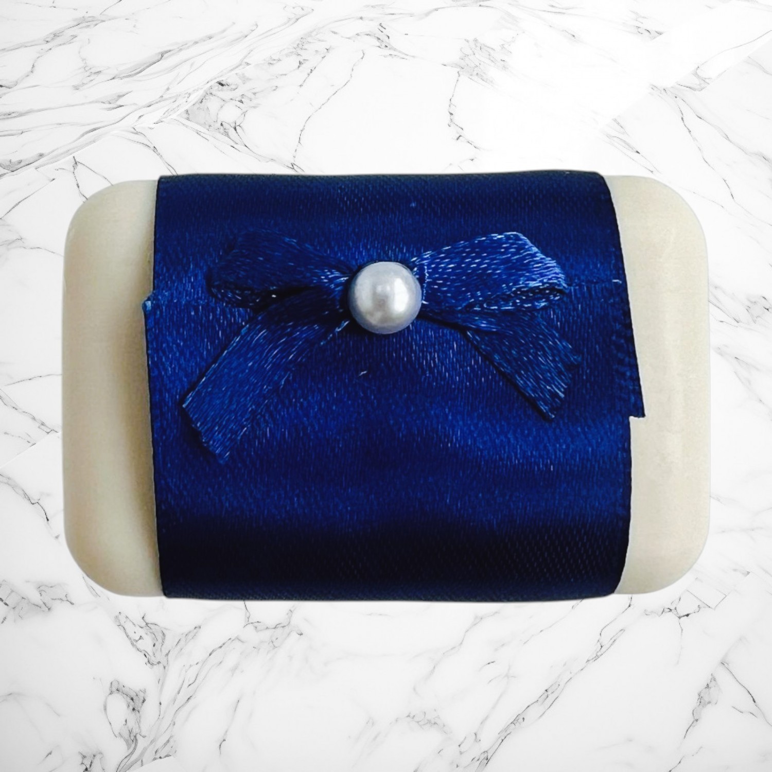 Toate elementele trusoului sunt așezate într-o cutie albă din carton, în formă de landou, decorată cu fundă și perlute
