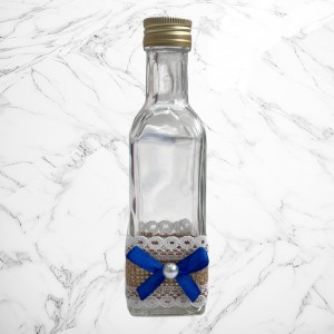 💧 Sticluța pentru mir – îmbrăcată în satin, perfectă pentru uleiul sfințit.