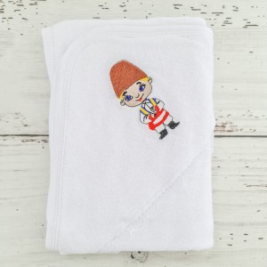 🍼 Prosop cu capișon pentru bebeluș – confecționat din bumbac moale, brodat cu motive tradiționale;