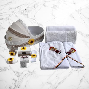 Alege un set de botez tradițional, cu design autentic românesc, perfect pentru ceremonia de creștinare a micuțului tău. Setul conține o lumânare decorată cu motive populare și un trusou complet, realizat din materiale de înaltă calitate, cu dantelă și broderii fine. 👶✨