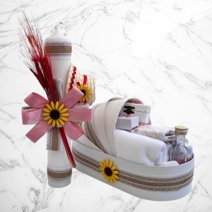 Alege un set de botez tradițional, cu design autentic românesc, perfect pentru ceremonia de creștinare a micuțului tău. Setul conține o lumânare decorată cu motive populare și un trusou complet, realizat din materiale de înaltă calitate, cu dantelă și broderii fine. 👶✨