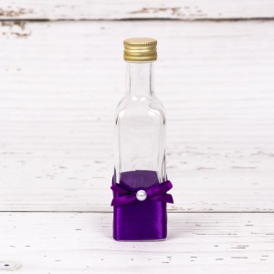 - sticluta de mir frumos decorata cu banda satinata si fundita mov. Dimensiuni: 15 cm inaltime x 4 cm lungime x 4 cm latime. Capacitate 100 ml.