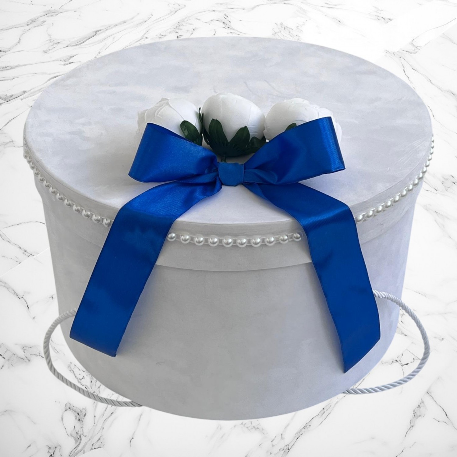 📦 Ambalaj: Toate elementele trusoului sunt așezate într-o cutie albă din carton, în formă de landou, decorată cu fundă și perlute