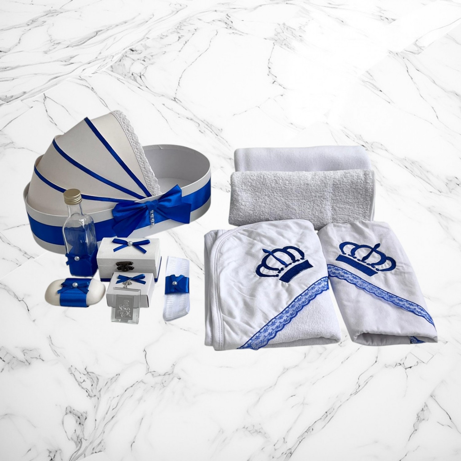 Acest set elegant și rafinat este alegerea perfectă pentru ceremonia de botez, îmbinând tradiția cu eleganța detaliilor lucrate manual. Setul conține o lumânare, un trusou cu broderie coroniță și o cutie hăinuțe pentru botez.👶✨