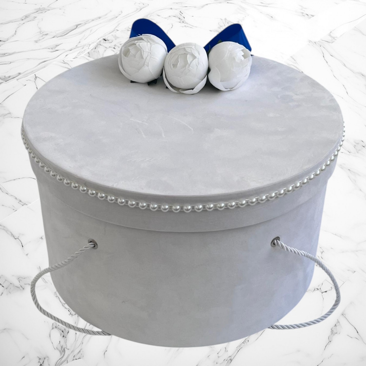 Decor: Manual, cu bujori artificiali, panglică din satin și bebeluș de pluș detașabil