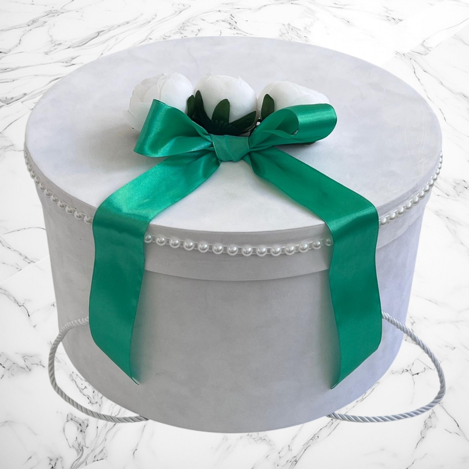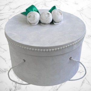 Decor: Manual, cu bujori artificiali, panglică din satin și bebeluș de pluș detașabil