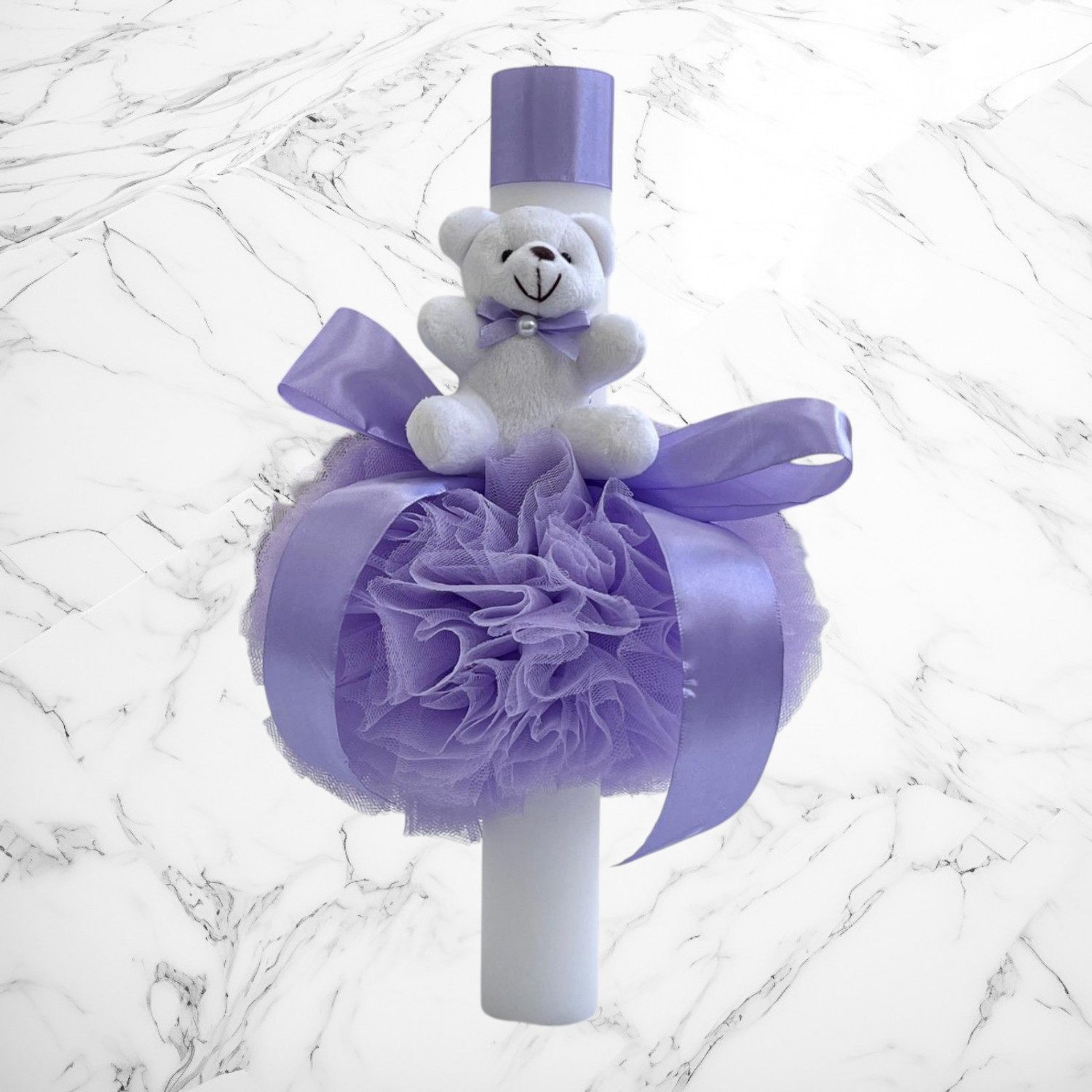 Decor: Manual, cu pampon din tulle, panglică din satin și ursuleț de pluș detașabil