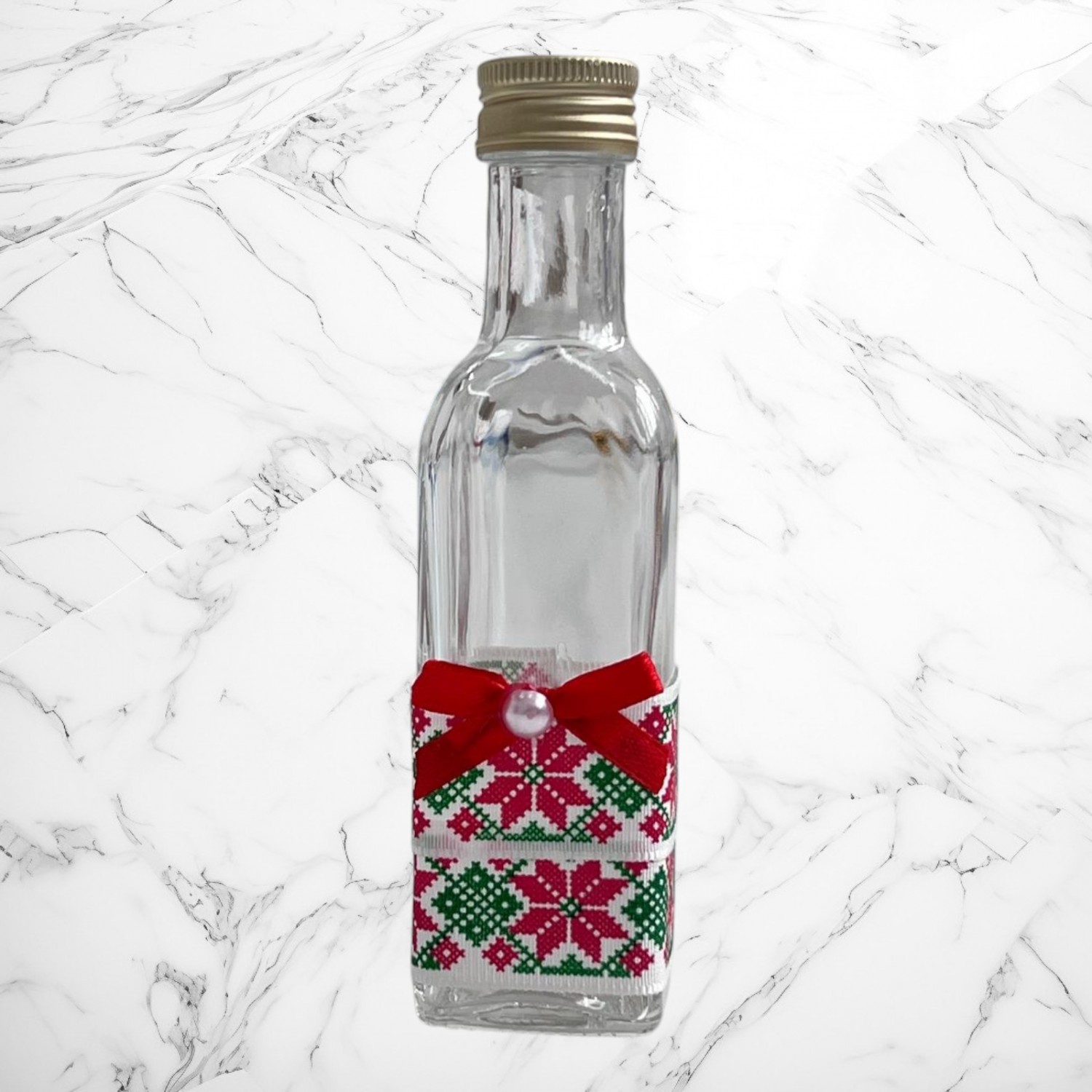 💧 Sticluța pentru mir – îmbrăcată în satin, perfectă pentru uleiul sfințit.