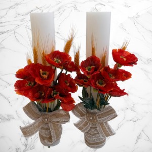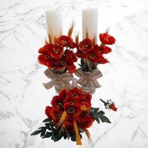 Comanda acum produsul "Set nuntă cu maci – lumânări nuntă, buchet mireasă și cocardă mire".
