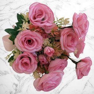 1 buchet de mireasă cu trandafiri roz, realizat din flori textile