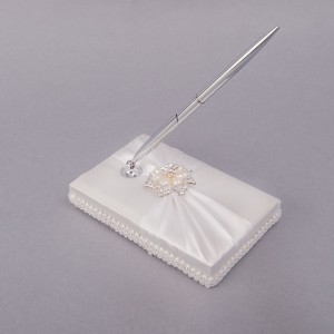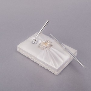 De asemenea, cosuletul de cocarde/petale, pernuta de verighete, cartea de oaspeti si suportul de pix au in mijloc cate o floare metalica cu pietricele strass si margele.