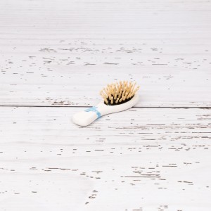 Nasa va pieptana bebelusul inainte sa ii taie motul, iar apoi va aseza in cutiuta pentru prima suvita parul taiat. Peria si oglinda vor fi folosite si la final pentru a aranja parul copilului dupa tundere.