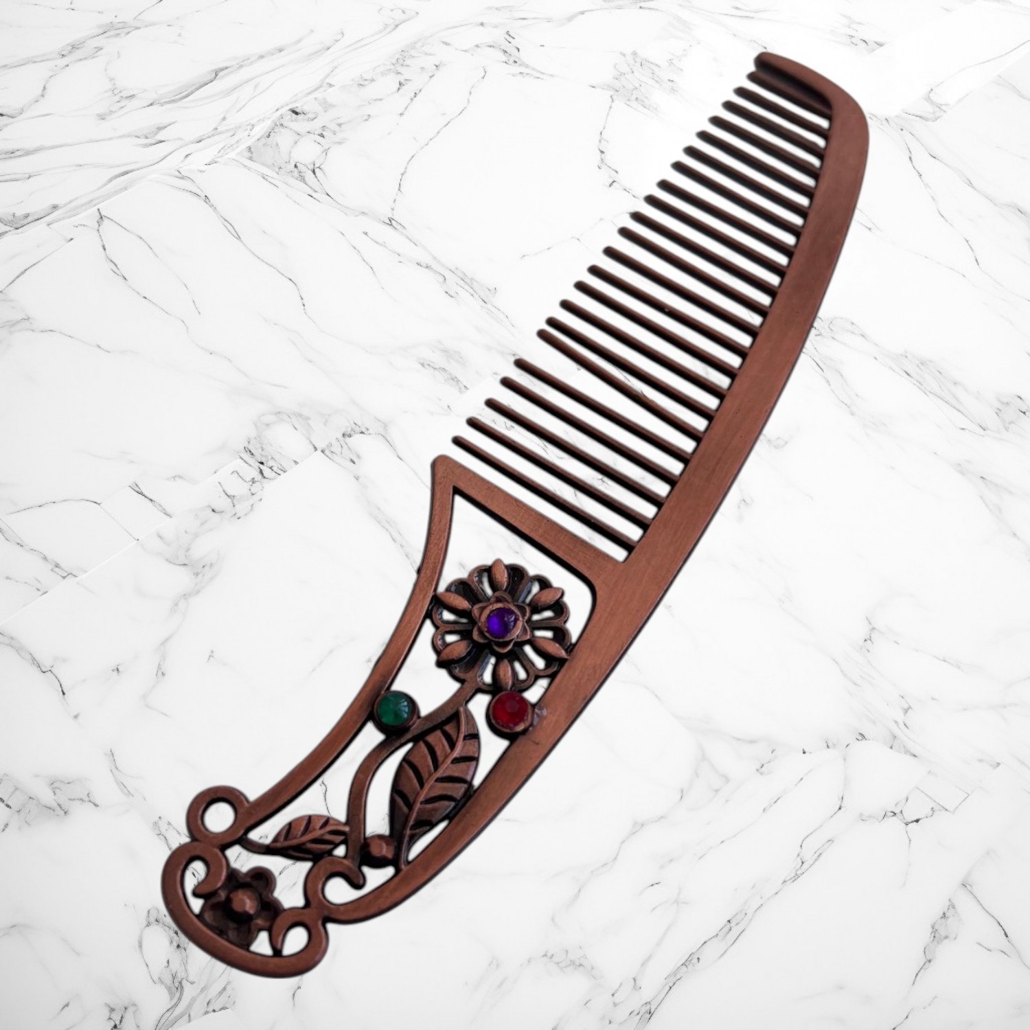 Pieptăn metalic asortat, ideal pentru momentul simbolic al aranjării părului.