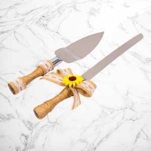Pentru mirii care prefera accesoriile de tort traditionale, setul de tacamuri Mire si Mireasa cu decor sfoara si floarea-soarelui reprezinta o alegere sugestiva.