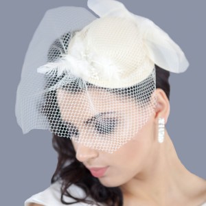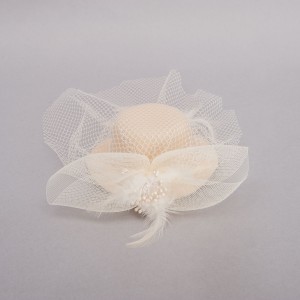 Voaleta de mireasa Brook ivory este formata dintr-o mini-palarie de fetru si plasa, decorata cu puf.