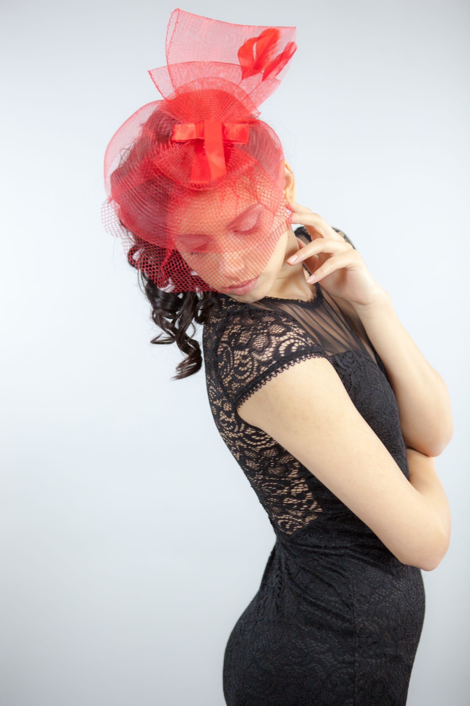 Daca esti o fire nostalgica care adora accesoriile vintage, atunci nu ezita sa iti intregesti outfitul de petrecere cu ajutorul unei voalete de ocazie chic de culoare rosie.