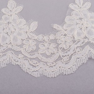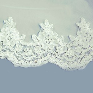 Voalul este realizat din tulle ivory foarte fin si este accesorizat cu dantela pe margine.